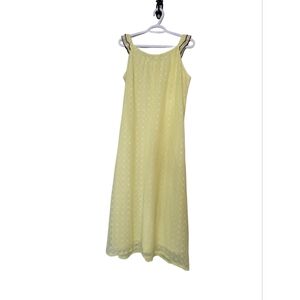 Vintage Yellow Sheer Nightgown Ruffle Trim Sleeveless Maxi 1970s Lingerie Size M