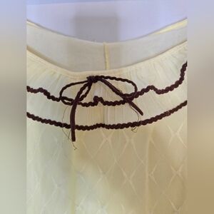 This dreamy vintage yellow nightgown is the perfect blend of soft femininity and retro charm. Crafted from a sheer, lightweight fabric with a subtle diamond pattern, it features a maxi-length silhouette and sweet brown ruffle trim around the neckline. A delicate bow completes the romantic look. Ideal for lounging, sleeping, or styling as a layering piece, this nightgown is a true vintage gem.