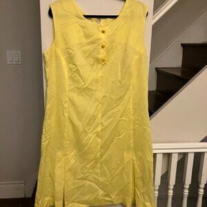 Splash of summer here! Lovely yellow plus-size dress. Label Bill Sims for Shaker Square. 1960s. VGUC, metal zip and button decor. Best with a slip as it's slightly transparent.