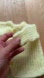 Adorable yellow knitted baby cardigan with button closure. A baby gift in 1971 and never worn. Appears to be an acrylic yarn that is quite thick. Adorable. May be better for a doll than a human it is small and a bit stiff.