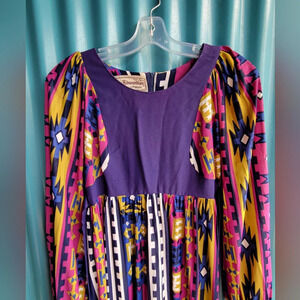 Vintage Young Edwardian by Arpeja purple mosaic 70s party dress size 9