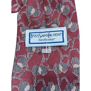The Vintage Yves Saint Laurent Pure Silk Neck Tie in deep red with a geometric print is a classic and designer piece for men. Made of high-quality silk, this tie is one size with a classic length of 57"-60" and 3.5" width. The timeless style and brand name of Yves Saint Laurent add sophistication and luxury to any formal outfit. Perfect for adding a touch of vintage charm to a dressy occasion.