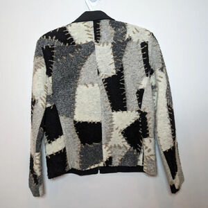 Vintage Yvonne Marie Division of Seline Zip Up Patchwork Fleece Embroidered Jacket S / M Woman Top - Cream Black Tan, Grey, Collared