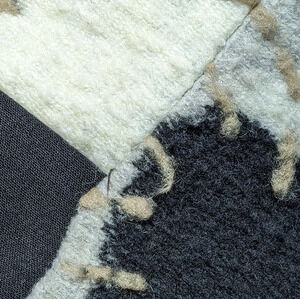 Fleece blend with other textured fabrics, full zip front, light jacket blazer style, patchwork, embroidered stitches, collared neck, luxury feel.