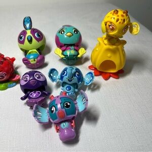 The image shows a collection of Zoobles, miniature toy figures created by Spin Master that can transform from a ball shape into an animal-like figure when placed on a magnetic "Happitat".