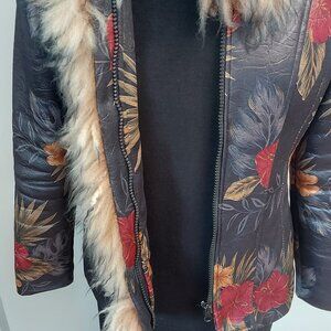 Vintage Zip Front Floral Jacket with Fur Trim - Size S