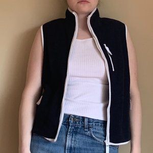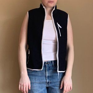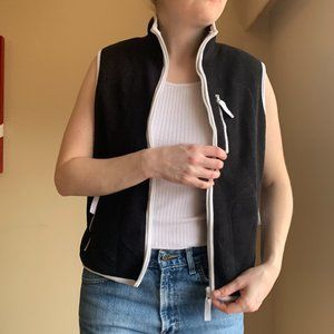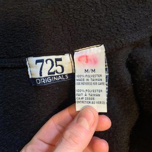 Black 725 Originals vintage vest. The black material is a soft fleece fabric, size medium but fits on the small size.