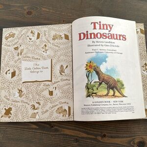 Vintage a Little Golden Book Tiny Dinosaurs. Some rounding to spine edges. No missing pages or colouring inside. Published 1988.