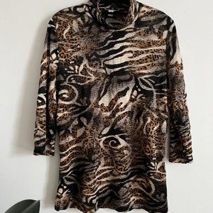 Vintage 90s animal print, mock neck shirt with 3/4 sleeves