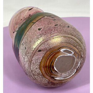 Such a unique item! Hand blown glass vase, lovely multi colored swirls, pink, gold, green. Made by artist Gozo Jean, vase is signed and in excellent condition with no chips, cracks or issues.