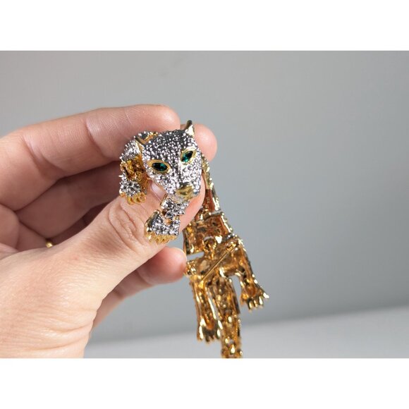 Vintage articulated cougar hanging panther, moveable tiger brooch, draping