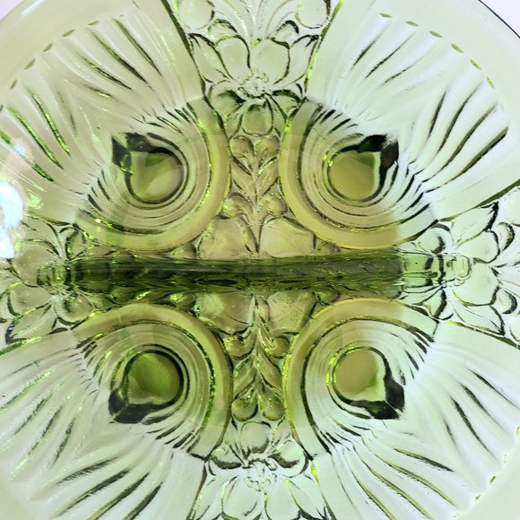 Vintage avocado green divided bowl.