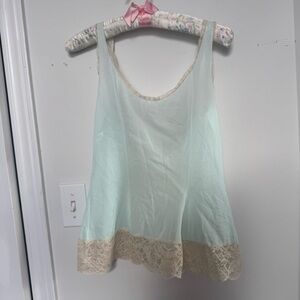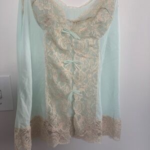 Vintage baby blue and cream Lace Trim cami sheer fairy core coquette lace up 34