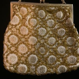 Gold coloured bead Satin with chain Made in Hong Kong