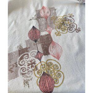 Vintage barkcloth curtains, soft pink, cream, gold, pair of 1950s / 1940s panels
