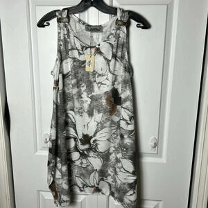 Vintage beach cover,NWT women SM -LG Handkerchief hem,sleeveless,boat neck,wood