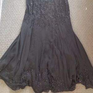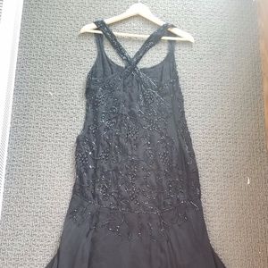 This is a gorgeous dress. It has detailed beading. it is in excellent condition. Cross straps in the back with plug back line and a 1920's inspired beading.