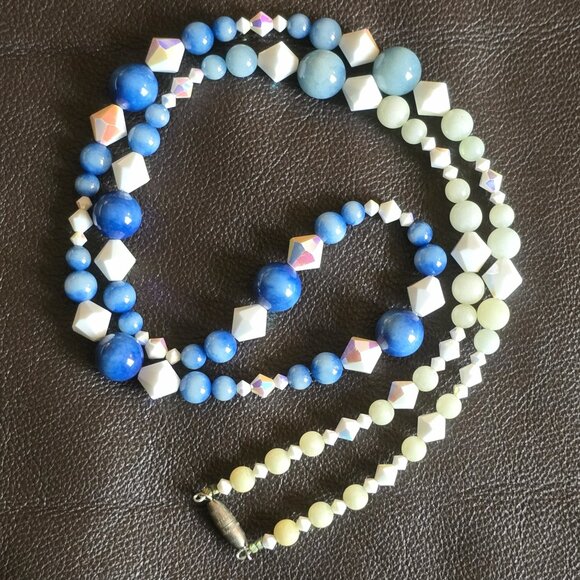 Vintage beaded necklace in varigated colours and shapes and materials.