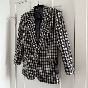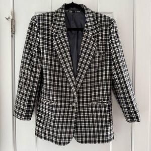 Vintage black & white check plaid wool blazer jacket - size Medium - Large