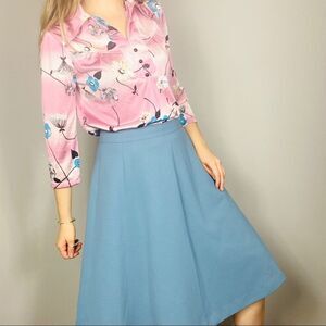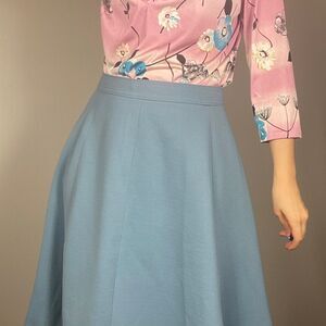 Vintage blue polyester skater a line circle skirt. Great vintage condition Paris star brand lighting zipper. Great vintage condition tag states size 18 fits like a modern medium.