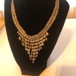 Vintage blue seed bead choker necklace. Beaded blue and white choker- like new . This choker necklace , if you look has older clasps on it. I have had them for a few years now and it seems there has been an upsurge in handcrafted beadwork lately. I have two pieces like this , the blue and white and red and white. The necklace is 18” long with the neck part about 1/2” thick and the beads in the front dropping to 3”. I planned to wear them but never did. Please check pics over.