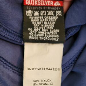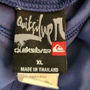 Charcoal blue half sleeve rashguard tshirt top with classic white logo print, by Quicksilver.