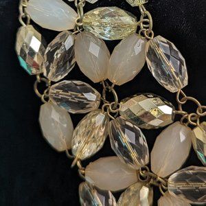 Vintage boho chic necklace golden chain, clear, silvery and pale pink beads Good condition