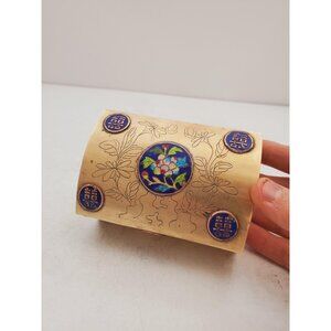 Vintage Chinese Brass and Enamel Decorative Trinket Jewelry Floral Box