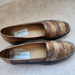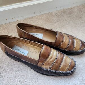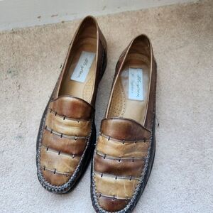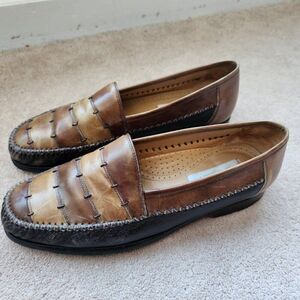 Vintage brown leather loafers patchwork shoes