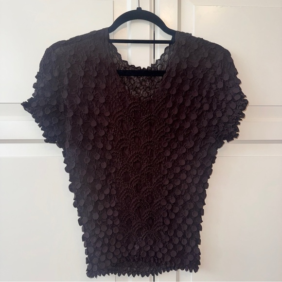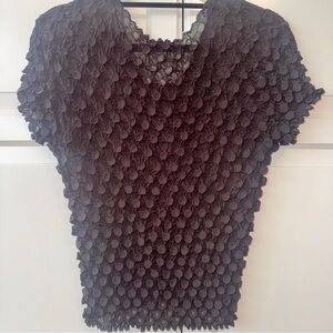 This elegant brown textured top is perfect for any occasion. Its unique design adds a touch of sophistication to your wardrobe.