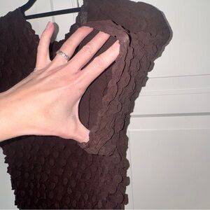 Brown bubble top, 80s vintage top, textured top, fits from a size medium to large, very tiny when lying flat as seen in the last pictures, stretches a lot