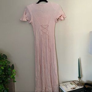 Vintage button down pink romantic flutter sleeve midi dress size 4
