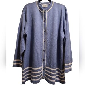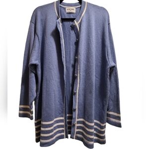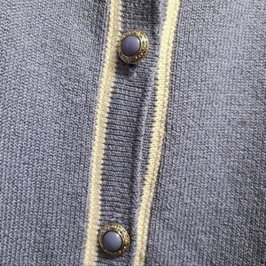 Vintage cardigan with beautiful silver & blue buttons. Excellent used condition. 85% Acrylic 15% Nylon