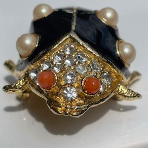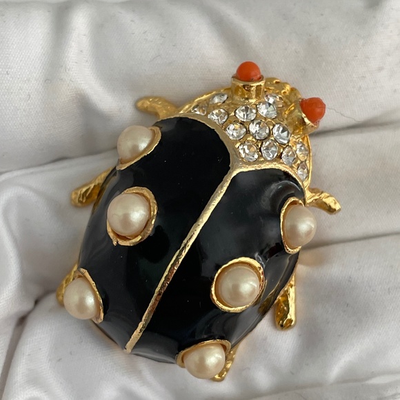 Vintage by Kenneth Jay Lane GP ladybug brooch black enamel