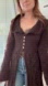 Long brown cardigan with very fairy and whimsical vibes. No tags, but feels and looks like wool with either a mohair or alpaca fibre (see the long fibres). Wooden buttons at the waist, has lots of stretch.