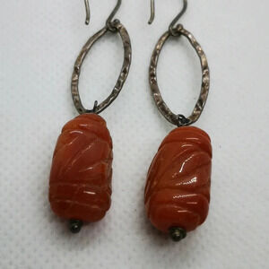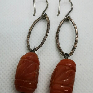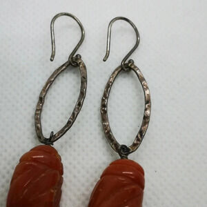 hand carved stones with a peened hammer lock on sterling with a blackened / tarnish look