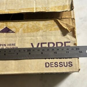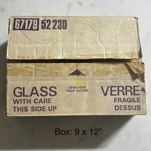 Vintage case of 12 Dominion glass 7.5 oz jelly tumblers / glasses with lids. This is a great find for the canning enthusiasts! This box contains new old stock that is unused. Two of the lids have some scratches on the top, but otherwise all jars and lids or free of damage or flaws.