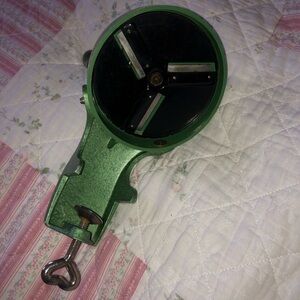 Vintage cast iron Green Pe De bean slicer- screws onto your counter.