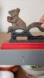 Vintage cast iron squirrel nutcracker, red wood base, beautiful engravings, The squirrel holds a red acorn and its tail acts as a lever to crack the nut. Stunning collectible item for a squirrel, nature lover.