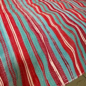 Vintage catalogne rag blanket, fits Queen bed. Striped, Red & Blue.
