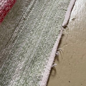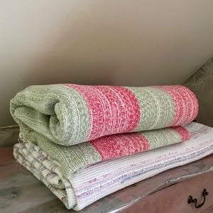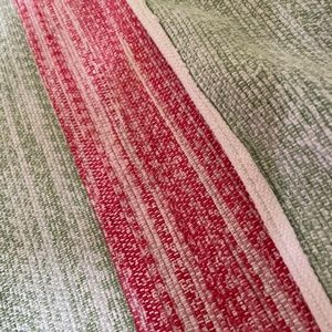 Vintage catalogne rag blanket, fits Queen bed. Striped, Red & Green.
