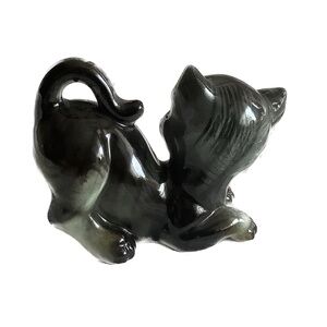 Vintage ceramic black cat. No chips or cracks. approximately 5 inches long and 3.5 inches tall. so cute!