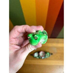 Vintage ceramic frogs on a lily pad salt and pepper shakers - small chips