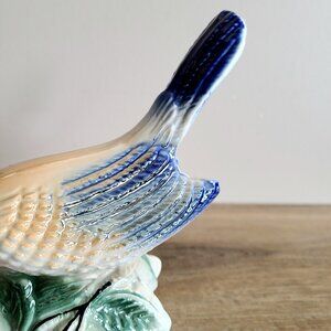 Vintage ceramic hand painted lusterware bird figurine. Made in Brazil.