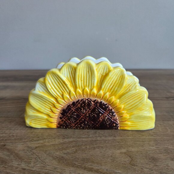 Vintage ceramic napkin/letter holder with sunflower and bee design.
