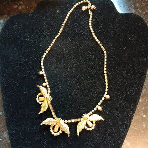 A beautiful piece with many sparkling crystals. In wonderful condition. I am selling it because I have too many necklaces. You will be thrilled with the way it looks on your neck. A very unique piece.