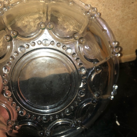 Vintage clear decorative candy dish, roughly 7” across. Classy little bowl.