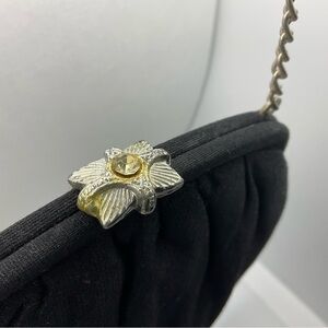 Beautiful vintage black purse in soft fabric with star clasp and chain handle. Great condition