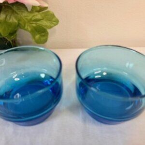 Vintage cobalt turquoise lowball cocktail glasses mid-century barware modern gla