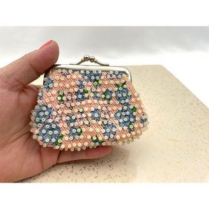 Vintage coin purse, kiss lock purse, beaded floral, 50s fashion accessory
